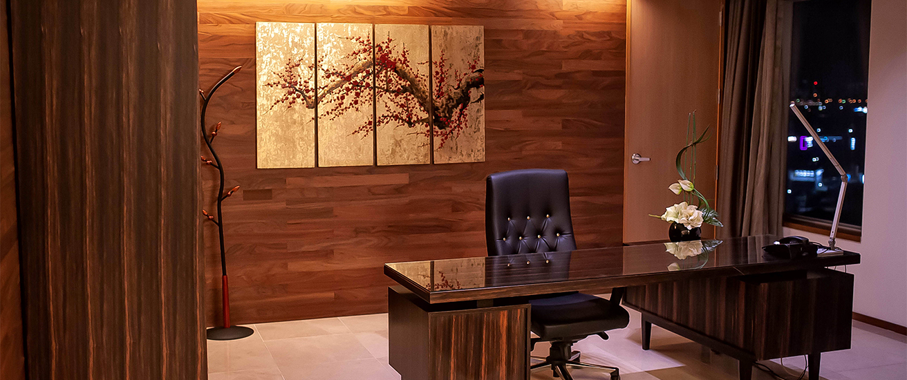 대형 창문을 통해 펼쳐지는 환상적인 광주 도심 야경을 만끽하며 럭셔리의 정점을 경험해보시기 바랍니다. 호텔 최상층인 10층에 위치한 241㎡의 객실은 VIP의 완벽한 비즈니스와 휴식을 위해 신중히 설계된 최고급 스위트 객실입니다. 킹 사이즈 베드 1개가 있는 침실, 넓은 거실, 다이닝 룸과 키친(kitchenette), 드레스 룸, 업무 공간, 대형 스파 욕조가 설치된 욕실이 고급스러운 대리석 바닥과 함께 완비되어 있습니다.