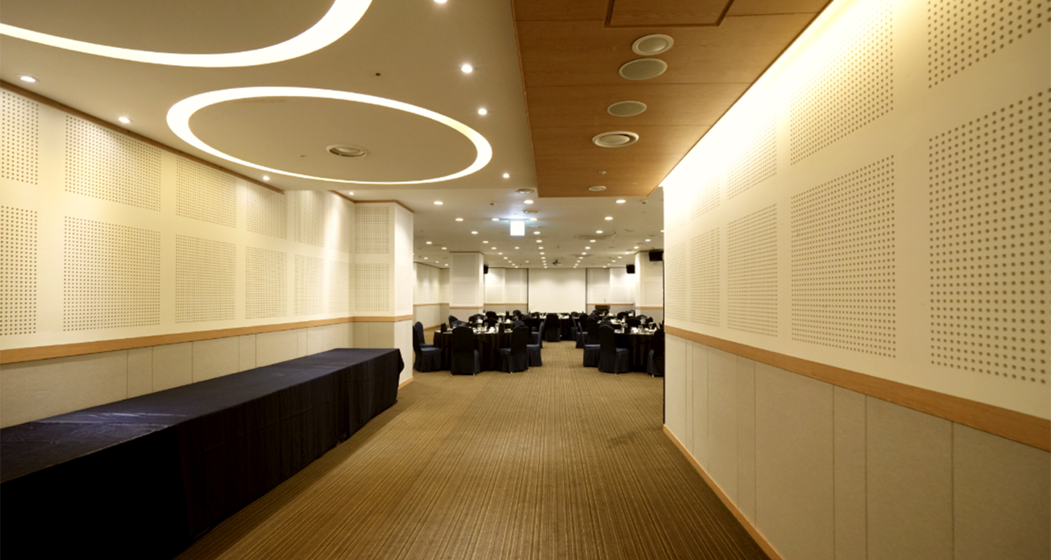 홀리데이 인 광주호텔 3층에 위치한 100~240명 규모의 비즈니스 모임 및 연회를 위한 다목적 연회장입니다.